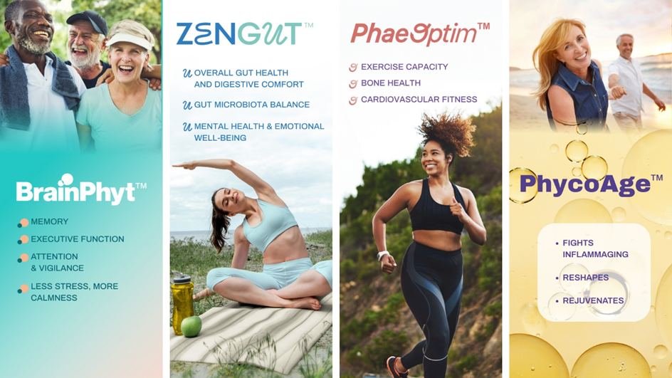 ZenGut™ is the first commercial extract of Tetradesmus obliquus, restoring microbiota balance, supporting digestive comfort, while enhancing mental resilience, and emotional well-being, reinforcing the gut as a critical pillar of longevity7. - Physical Longevity – Energy That Lasts